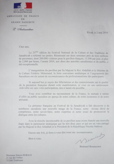 Prestation effectuée en Arabie Saoudite
